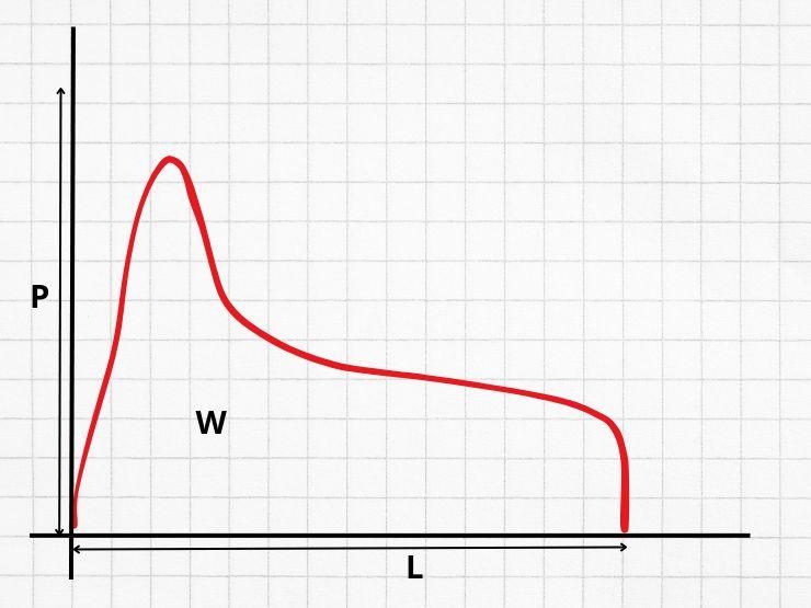 A görbe alatti terület alapján kiszámítható az a teljes energia, amely szükséges a tészta felszakításához. Ezt az értéket W-nek nevezik, amit – bár kissé leegyszerűsítve – liszterősségként is ismernek, a lisztek sütési minőségének egyik fontos mutatójaként.